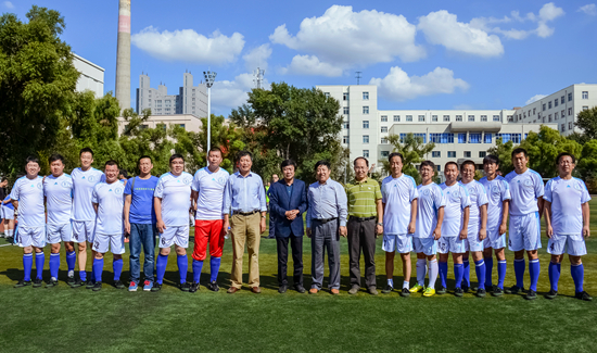 党委书记赵国刚、工会主席杨春与参赛球员合影