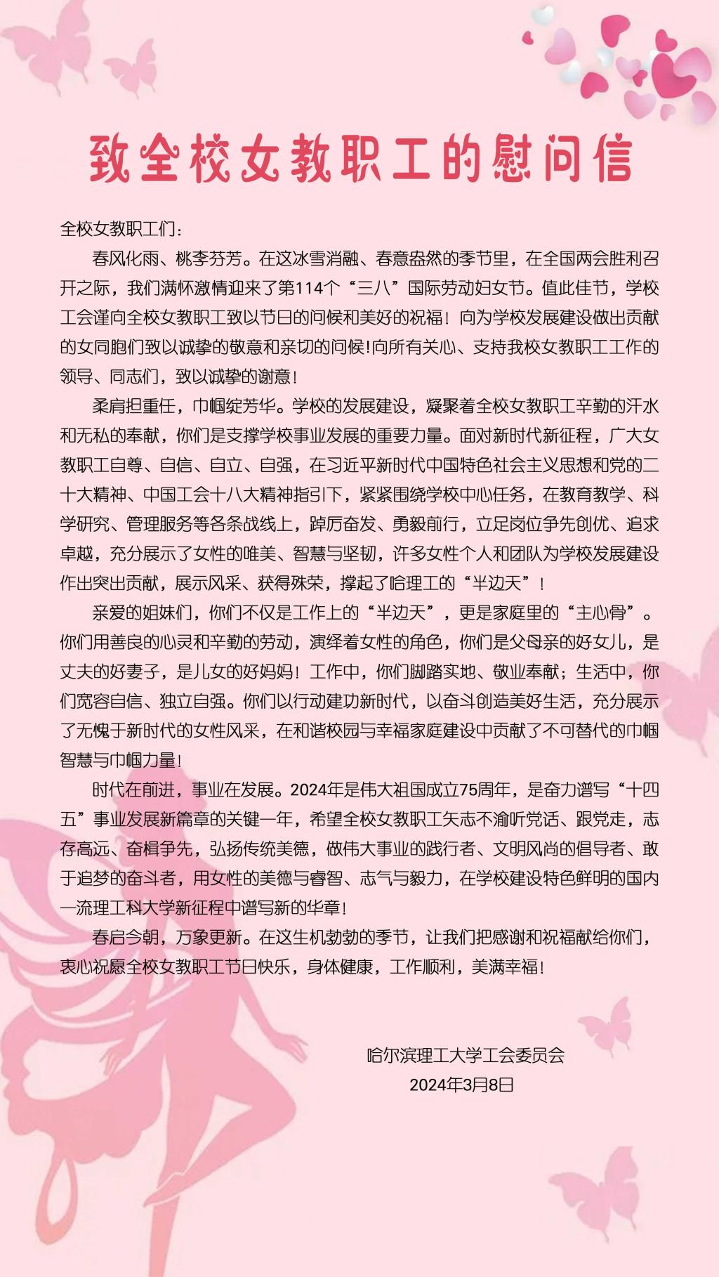 致全校女教职工的慰问信