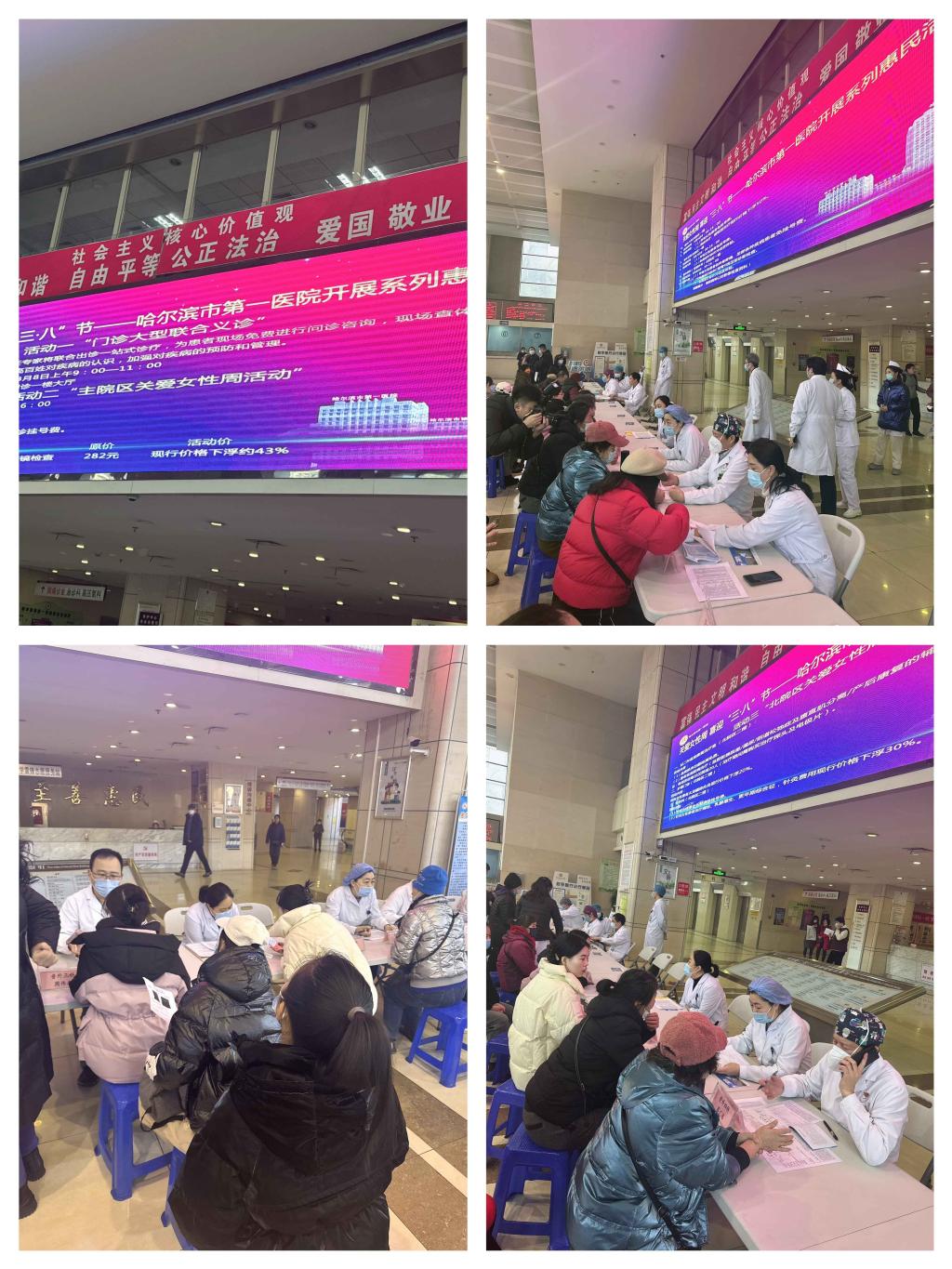 人间最美三月天,守护健康绽芳华。值此第114个“三八”国际劳动妇女节来临之际,为全面贯彻党的二十大精神和中国工会十八大精神,进一步提高我校女教职工健康意识、提升健康水平,让广大女教职工享受优质便捷的医疗服务,校工会特联合哈尔滨市第一医院于3月8日上午在哈尔滨市第一医院门诊楼开展专场义诊活动,我校40余名女教工参加。