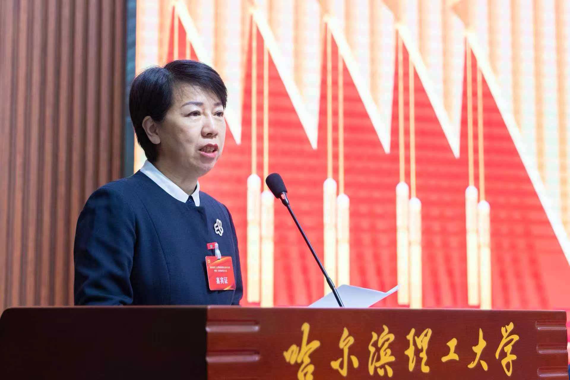 校党委书记赵琳代表学校党委向大会召开表示热烈祝贺。他指出,七十余载薪火相传,学校广大女教职工、女学生以实干担当撑起学校发展“半边天”,为国家装备制造业与龙江振兴作出不可替代的贡献。他对妇联工作提出殷切期望:一要铸魂领航,坚守初心使命,坚定不移听党话、跟党走。二要服务大局,紧扣立德树人根本任务,在科技创新、产教融合、人才培养中彰显巾帼作为;三要强基固本,建强组织阵地,打造党委放心、师生信赖的坚强堡垒与温馨家园。